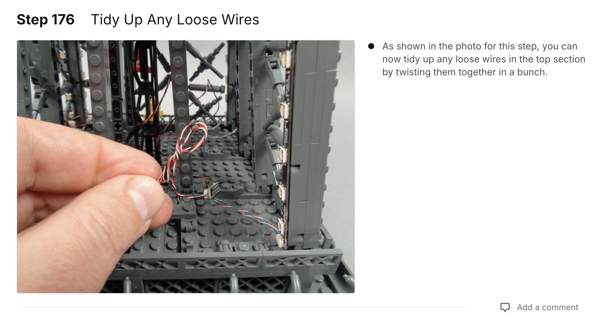 But for the life of me I could not even try to get them tied up because these wires are VERY tiny and not easy to manipulate. At this point, it was about 6 hours into my assembly of the light kit and I just wanted the lights to come on, so I didn’t bother cleaning up the wires at the top. My point remains about using shorter wires though - they’re too long for up here (so long in fact that the top-level interconnect board can dangle out of the top level by an inch or two and the control wires have slack!).